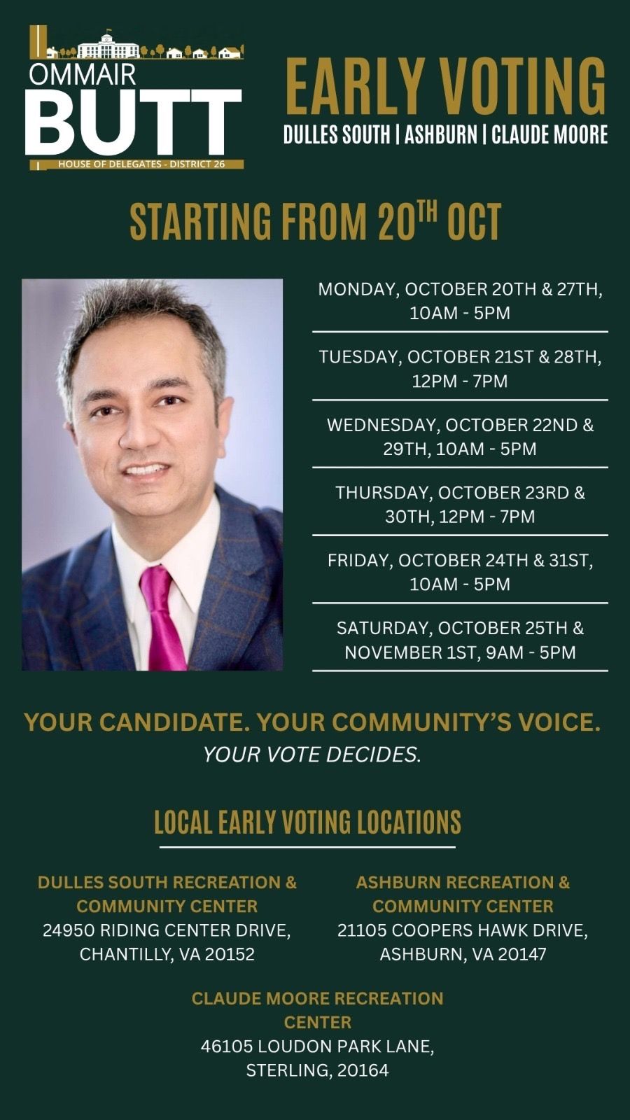 “Loudoun County is where tradition meets progress—where families build their futures, businesses innovate, and neighbors unite to strengthen our community,” said Ommair. “My campaign is centered on defending the values that matter most: quality education, economic opportunity, responsible growth, and public safety. I am ready to bring strong leadership to Richmond to protect Loudoun and keep moving it forward.”